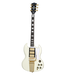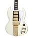 Made in collaboration with Gibson™ Custom, the Epiphone 1963 Les Paul SG With Maestro Vibrola is a stunning recreation of the classic vintage model. 1963 was the last year that the “Les Paul™” moniker was used on the SG™ Custom and the first year for the Maestro™ Vibrola™. The premium appointments the model is known and loved for are all present here, including a one-piece mahogany neck with a long neck tenon, a SlimTaper™ profile, and a bound ebony fretboard. It also features mother-of-pearl block fretboard inlays and a Custom split diamond headstock inlay on the bound Gibson-style “open book” headstock. The electronics are equally impressive, with three USA Gibson Custombucker humbucking pickups hand-wired to CTS® potentiometers, Mallory™ capacitors, and a Switchcraft® pickup selector toggle switch and output jack. The VOS (Vintage Original Sheen) Classic White finish is nicely complimented by the gold hardware, including 18:1 ratio Grover® Rotomatic® tuners. A black hardshell case with Inspired by Gibson Custom graphics and a goldenrod interior is also included.