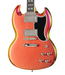 The Gibson SG™ has long been Gibson’s most popular solidbody electric guitar model. It was initially released as a reimagined Les Paul™ and later renamed the SG (which stands for Solid Guitar). Epiphone is excited to introduce the new Futura SG Custom, a modern take on a design that still looks sleek, modern, and slightly menacing over 60 years after Gibson first introduced it in 1961. The double-cutaway mahogany body features classic SG sculpted edges that not only look great but also make it very comfortable to hold and play. It is equipped with a LockTone™ Tune-O-Matic™ bridge and a LockTone Stop Bar tailpiece for outstanding intonation and sustain, and Posi-Lok™ strap buttons to keep your strap securely attached without extra hardware. The glued-in mahogany neck features an ultra-comfortable, fast-playing Modern "C" profile and is topped with a bound ebony fretboard with 22 stainless steel medium jumbo frets and classic Super 400-style pearloid split-block inlays. The fretboard also features a 10”-14” compound radius, making chording and string bends smooth and effortless. The bound Kalamazoo headstock is equipped with locking Grover® Rotomatic® tuners with kidney buttons, a Graph Tech® nut, and the Custom split diamond and Epiphone logo, both inlaid in mother-of-pearl.