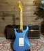 Excellent condition '59 Reissue Custom Shop Stratocaster. Custom Shop Fat '60s pickups with a very forgiving 9.5" radius, providing very comfortable playability. In a relic'd Super Faded Lake Placid Blue finish. Hardshell case, certificate of authenticity and original product build sheet included.