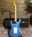 Used Excellent Condition '59 Custom Shop Reissue Stratocaster. Hardshell Case Included. Fat 60's Pickups with a very forgiving 9.5" Radius, providing very comfortable playability. In a Relic'd Super Faded Lake Placid Blue finish. Certificate and original Read more..